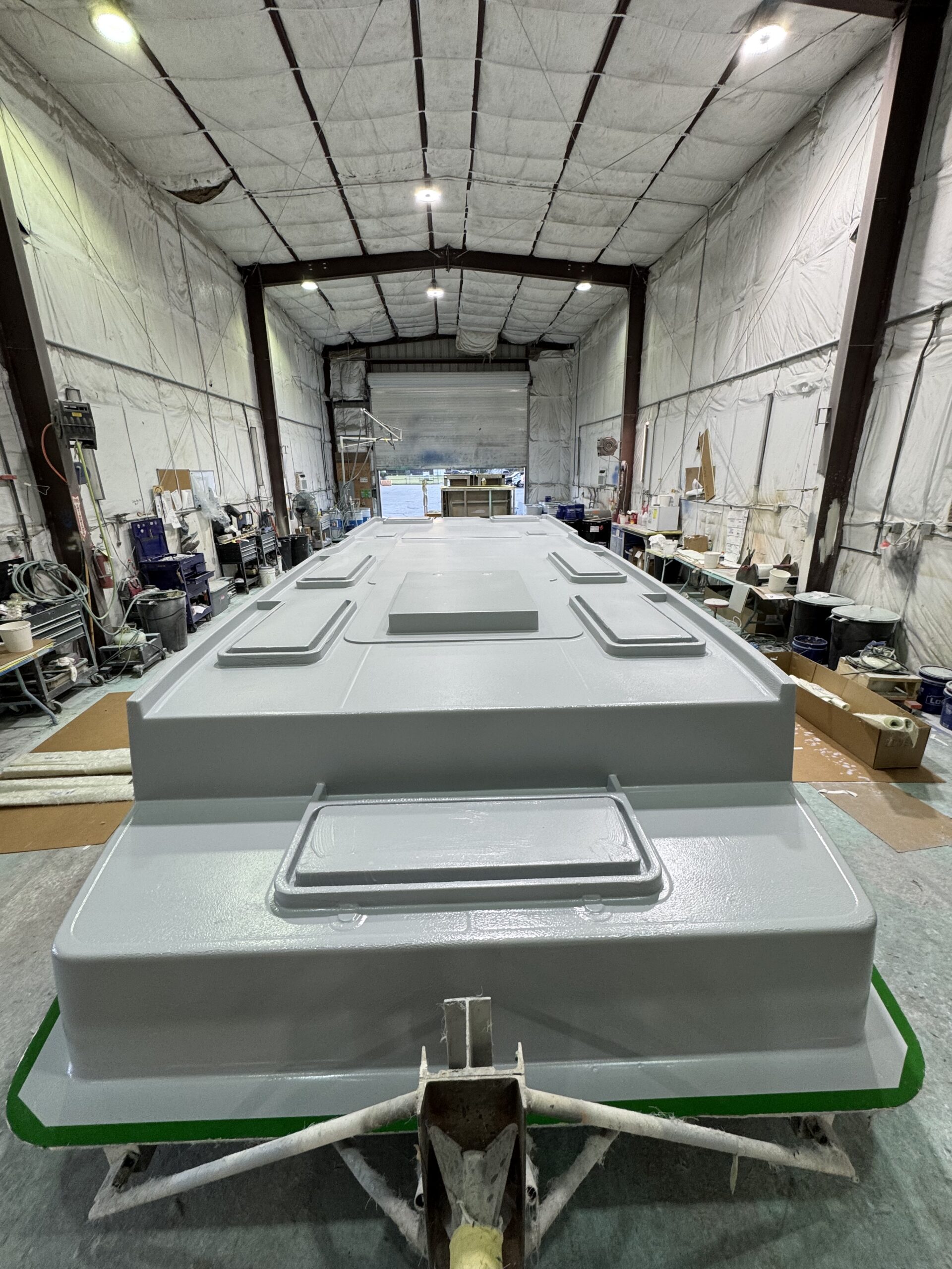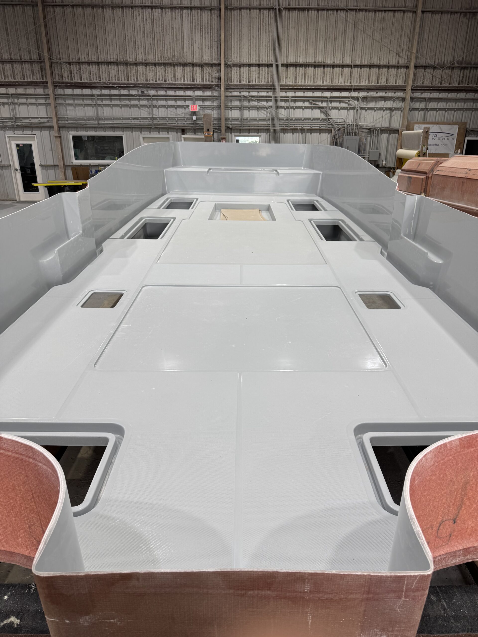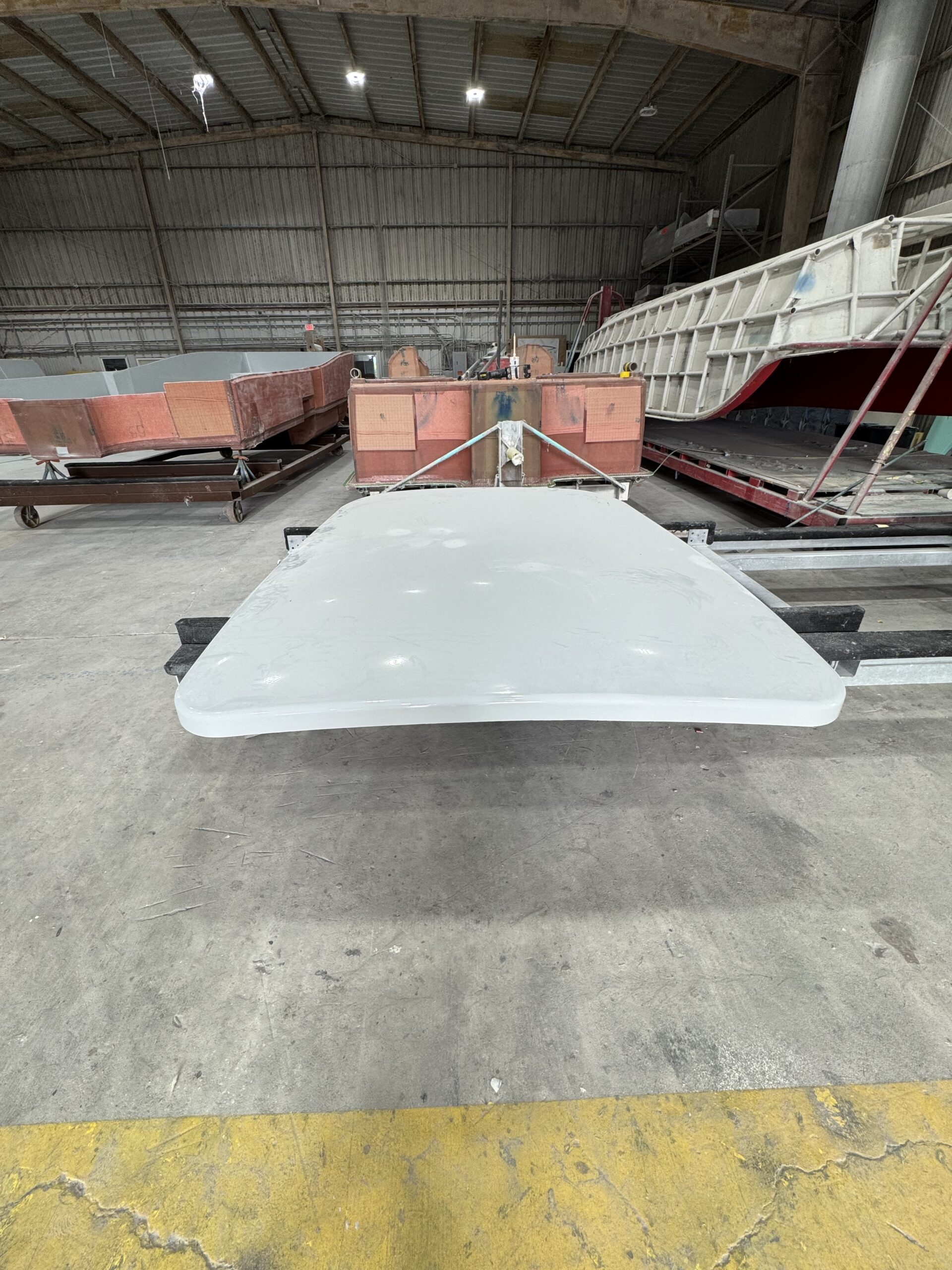 All fiberglass parts are complete for Hull #25! This means that the Cap, liner, and major components are finished, trimmed, and ready for installation. Time to continue with rigging and piece this beatuy together—assembly and systems integration are next as this build really starts to come to life.