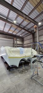 The tower is currently out for powder coat, and the boat’s first water test is scheduled in three weeks.