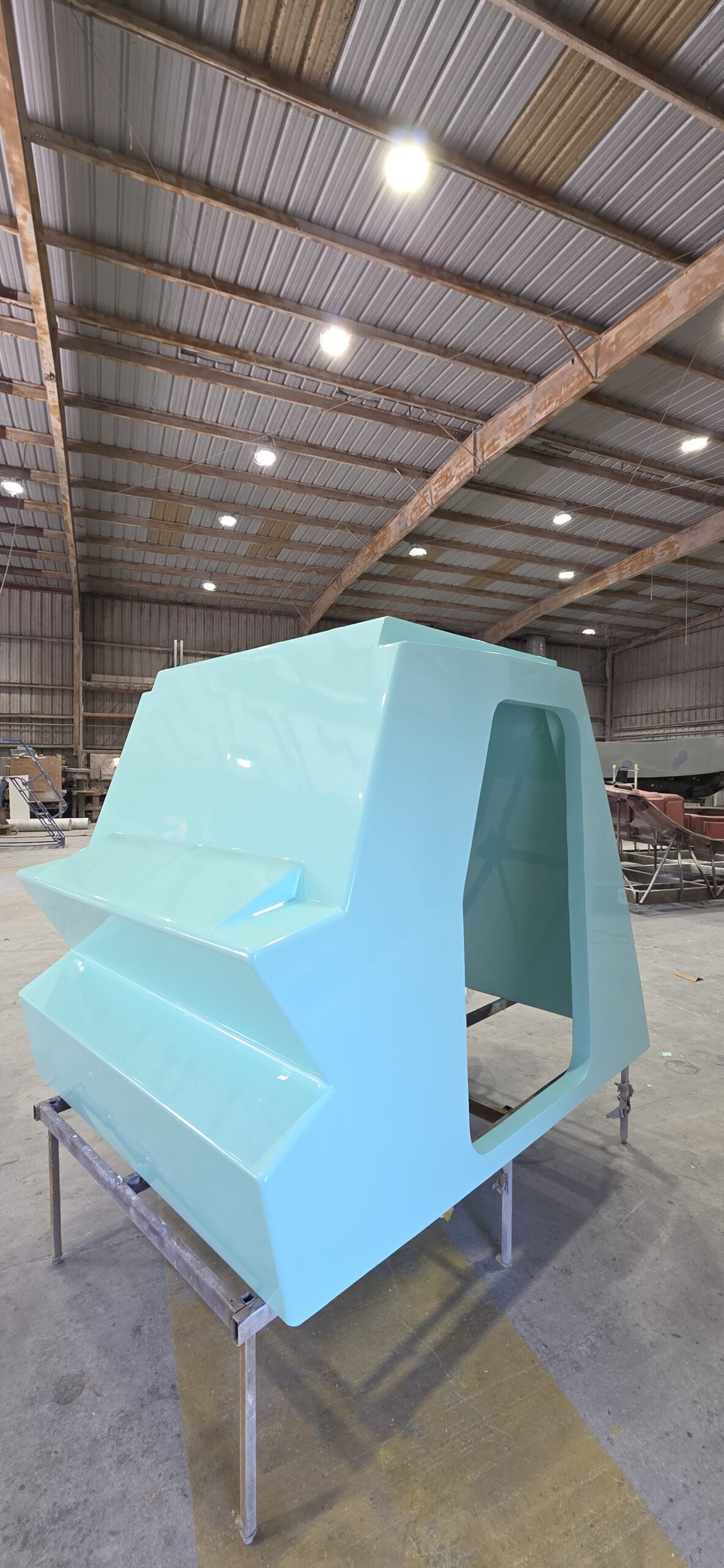 The console, leaning post, coffin box, and hardtop assembly will be bonded next week.