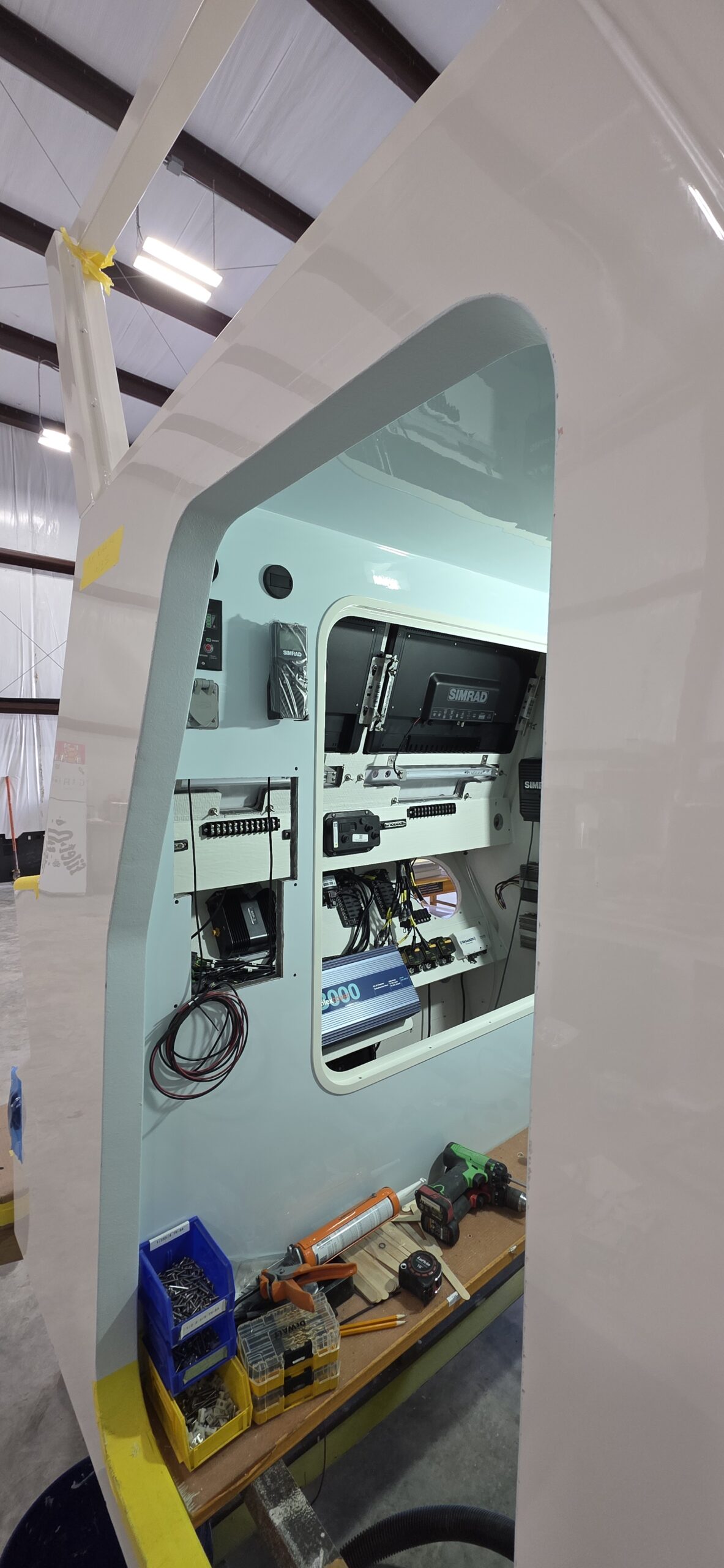 The console is complete and being picked up today for pre-rigging work (this boat is being built for Tony Eden, owner of Boattronics). This is the first time we’ve let a customer rig their own boat, but it is a unique circumstance considering he does this for a living! Tony has some crazy plans for the electronics on this boat…keep your eyes peeled for updates on his socials and ours!