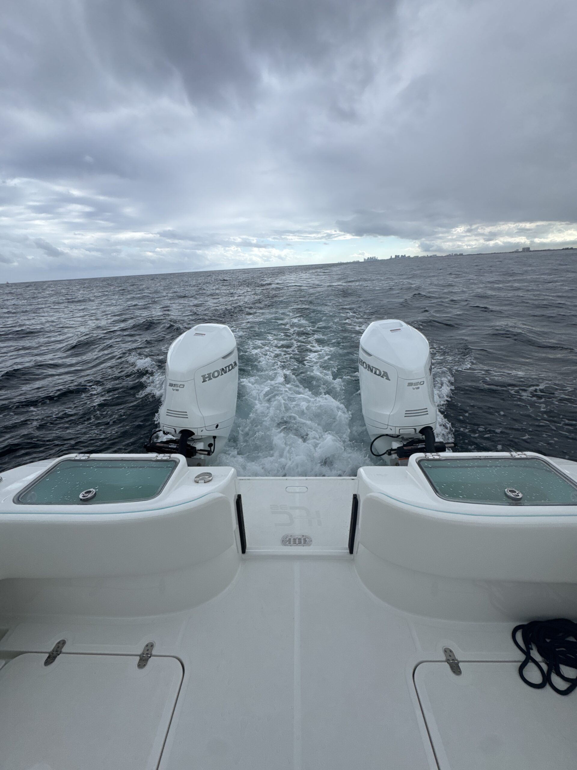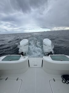 Hull #23 hit the water in October and we were finally able to test and tune the twin 350 Hondas! They are certainly larger and heavier than what we’re used to, but at a price point competitive to the 300 V8 Mercury’s, they’re a good option for folks who want a bit more HP! We did some initial testing prior to FLIBS and were happy with the numbers, but we ended up spending some more time to dial them in after the show and dialed them in a bit more. Here’s the numbers from the initial testing: